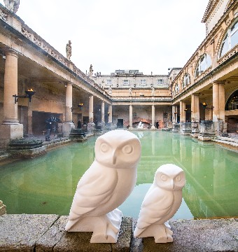 A parliament of 100 Minerva Owl sculptures will adorn the city of Bath this summer. Minerva’s Owls – a 3-month public art event – will celebrate Bath’s Roman heritage and raise funds for local charities. The project takes its inspiration from the Roman Goddess Minerva, to whom the Roman Baths Temple was dedicated in the 1st century AD, and whose animal symbol was the owl of wisdom. Minerva’s owl can be seen carved into the stone pediment of the Roman Baths Temple at the Roman Baths Museum