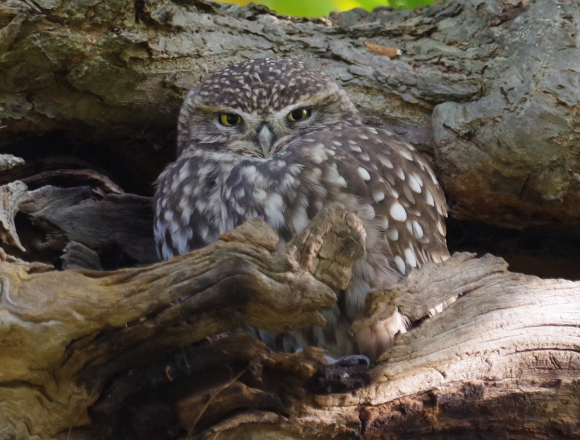 Presently, I know of five pairs of Little Owls in the park. There is the pair near the leaf yard, another pair which nests in an Oak tree north of the Albert Memorial; and another in a tall Lime tree on the hill above the Henry Moore sculpture. This year, all three pairs bred and raised two owlets each, all of which I have seen and photographed and published the pictures.