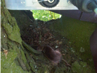 Little Owl food larder under a PIT tag data logger.